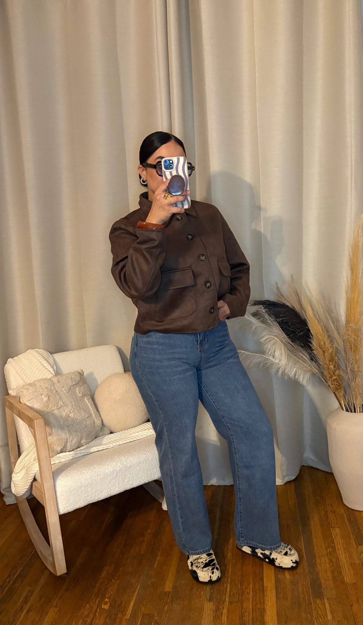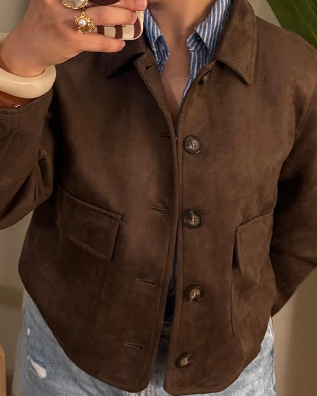 Veste courte marron effet daim - élégance et tendance automnale